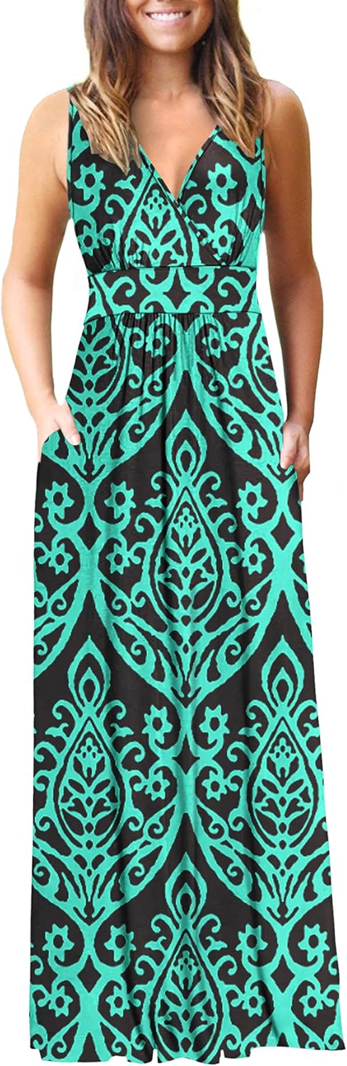 AUSELILY Women's Sleeveless Formal Dress Deep V Neck Loose Plain Cocktail Long Maxi Dresses with Pockets 2026 New