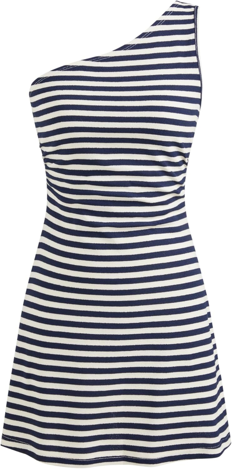CIDER Women's Summer Striped Mini Dress Sleeveless Bodycon Dresses Asymmetrical Neck Casual Party Club Dress 2025