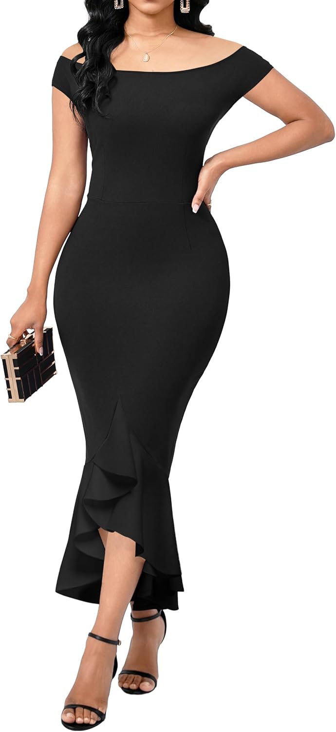SxClub Elegant Dress for Women Sexy 3/4 Sleeve Business Knee Length Dresses Fishtail Zipper Belt