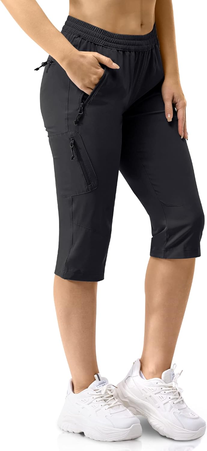 33,000ft Women's Capri Golf Pants Casual Quick Dry UPF 50+ Lightweight Stretch Cargo Hiking Pants with Pockets