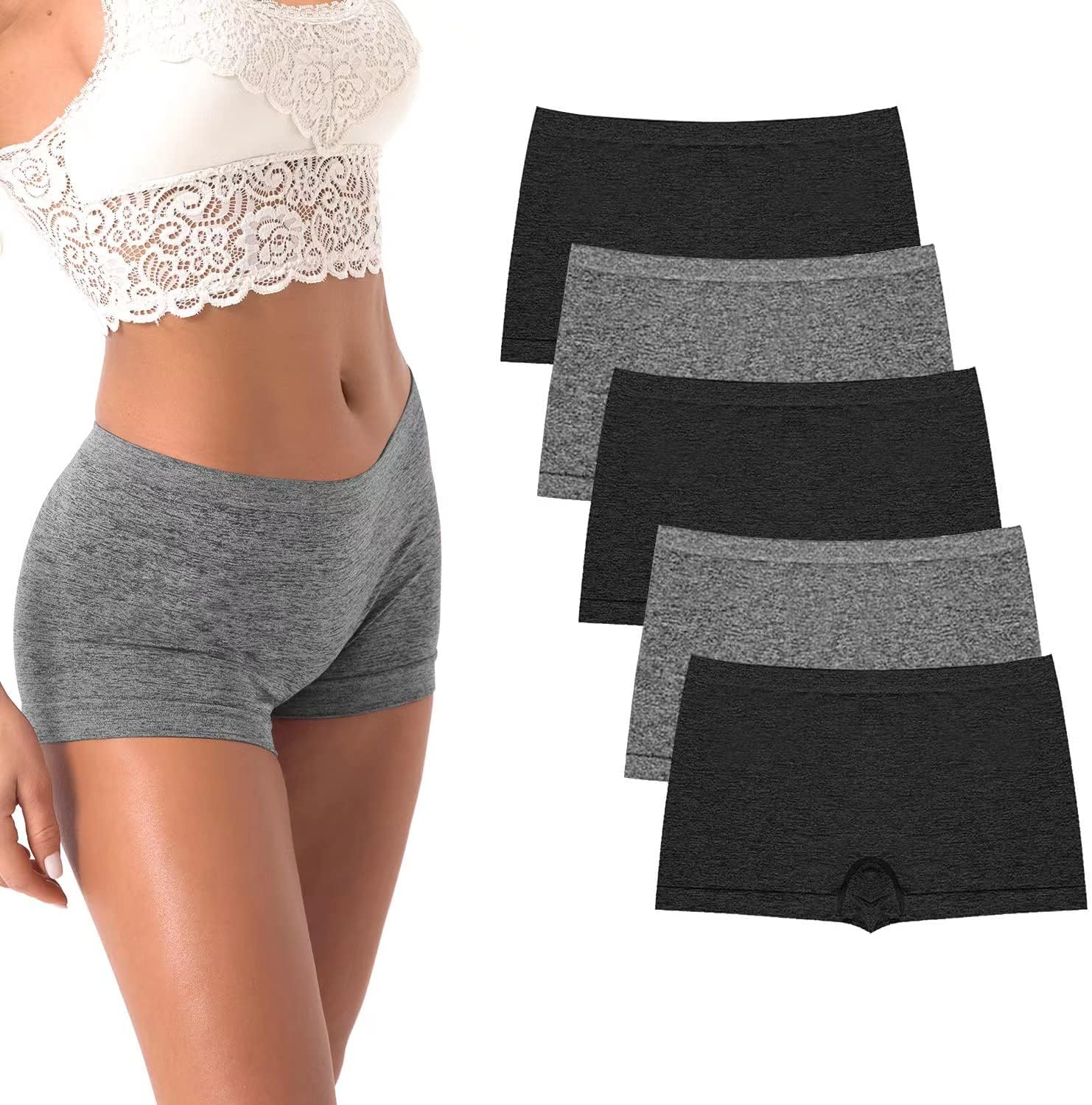 R RUXIA Women's Boyshorts Underwear Seamless Boy Shorts Panties Soft Stretch Boxer Briefs 5 Packs(Regular & Plus Size)
