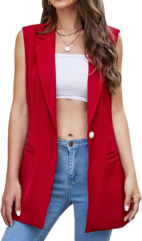 Kedera Women's Sleeveless Vest Blazer Fully Lined Spring Casual Open Front Work Office Tops Jacket Pockets