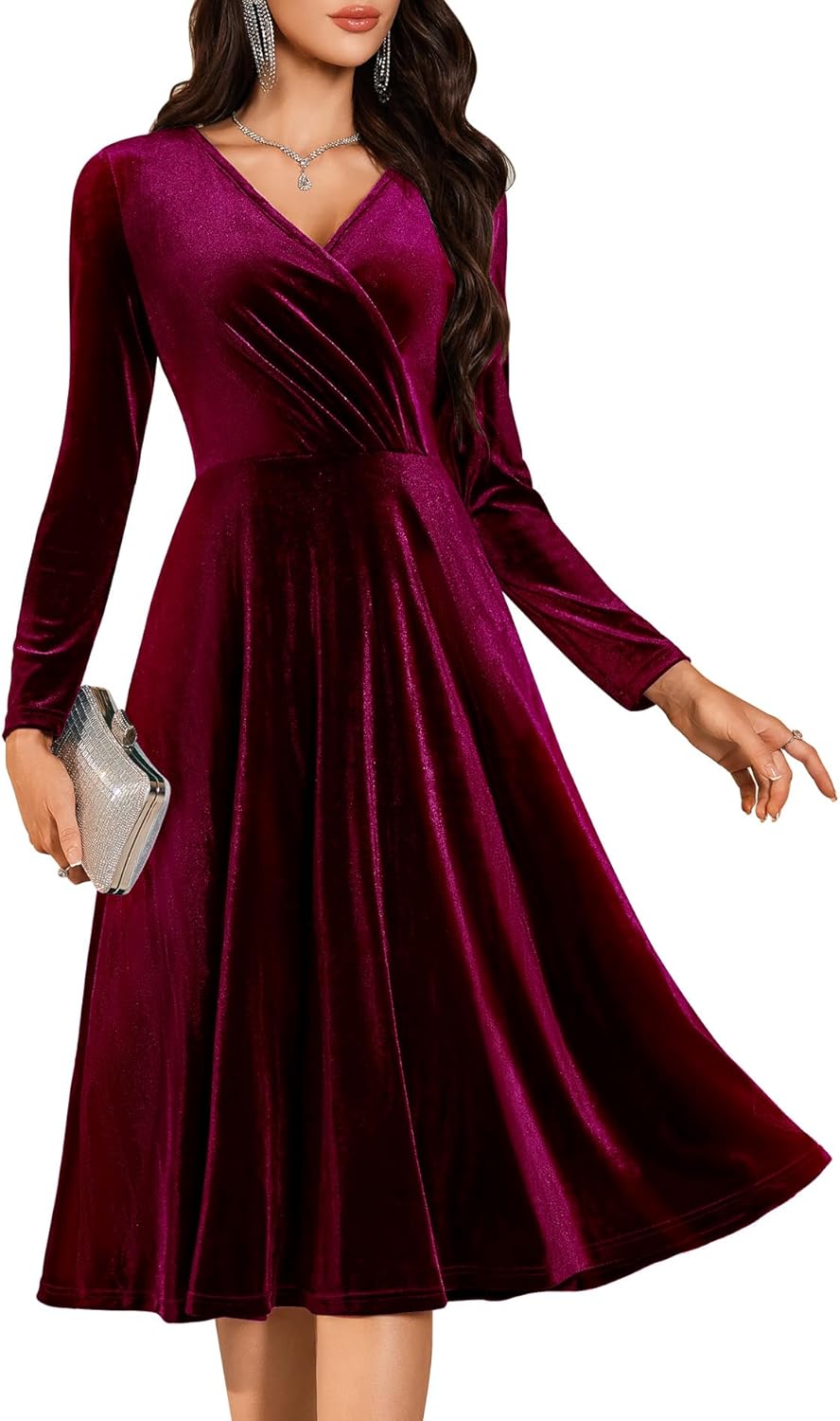 BeryLove Velvet Cocktail Party Formal Dress Long Sleeve Winter Wedding Guest Dresses