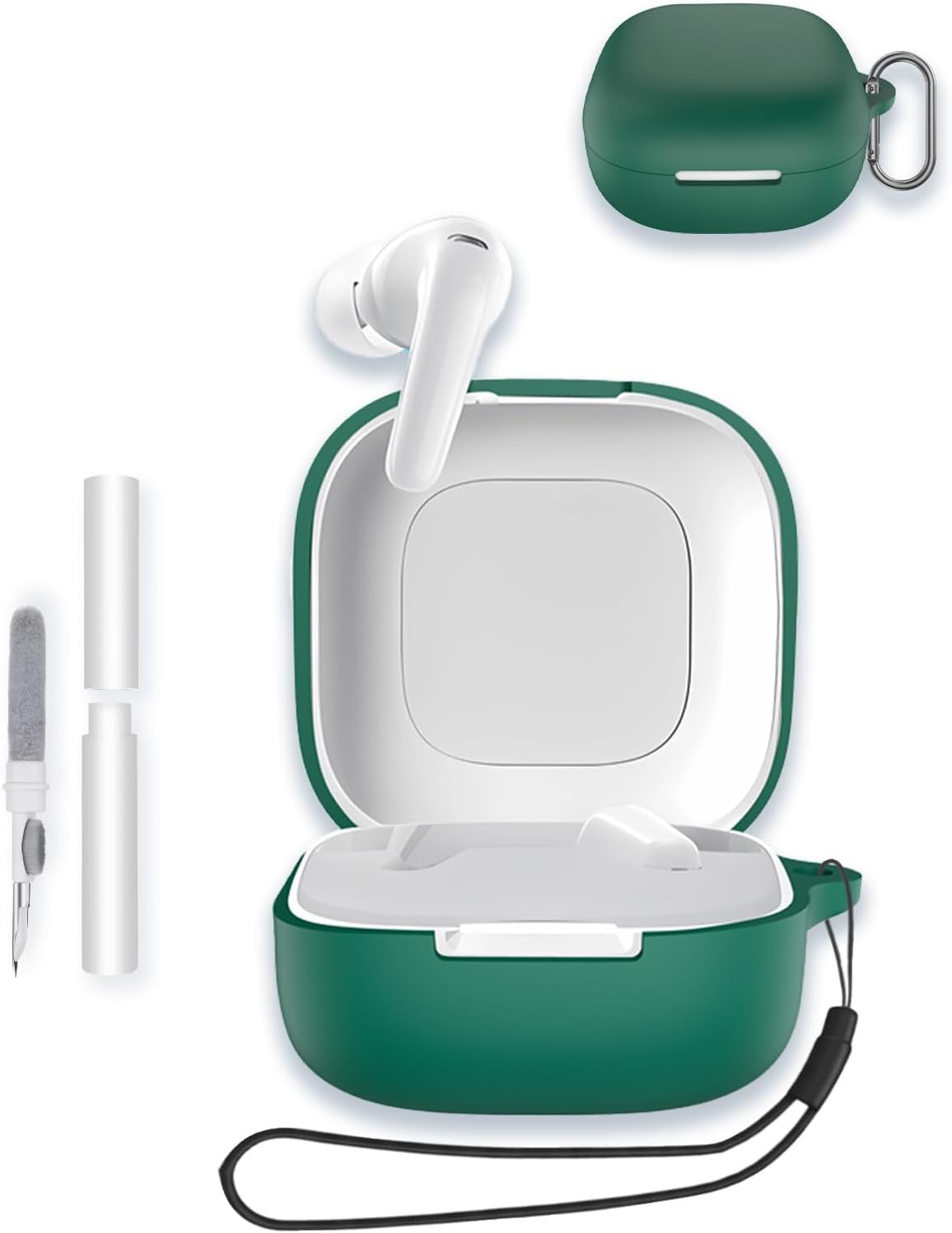 Case for Soundcore P31i by Anker Earbuds 2025 New, WUNIAK Soft Silicone Protective Portable Scratch Shock Resistant Shell with Cleaner Kit & Carabiner & Lanyard for Soundcore P31i,Green