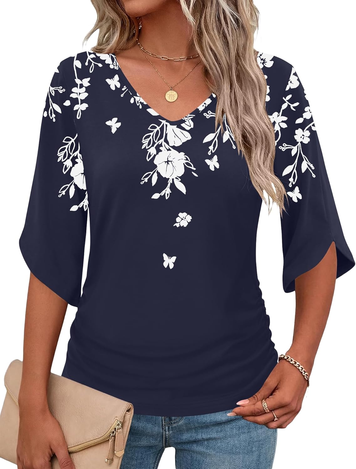 Micoson Womens 3/4 Sleeve Tops and Blouses Dressy Casual Summer Tops V Neck Work Clothes