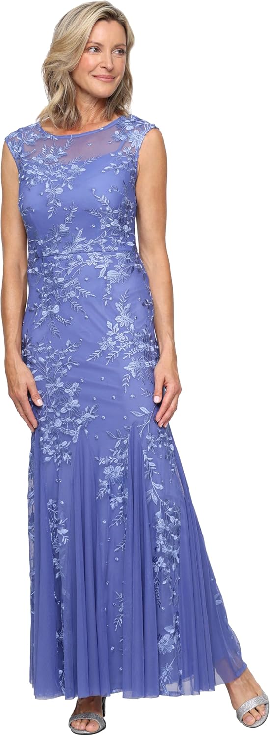 Alex Evenings Womens Long Length Fit and Flare Mother of The Bride Dress with Godet Detail