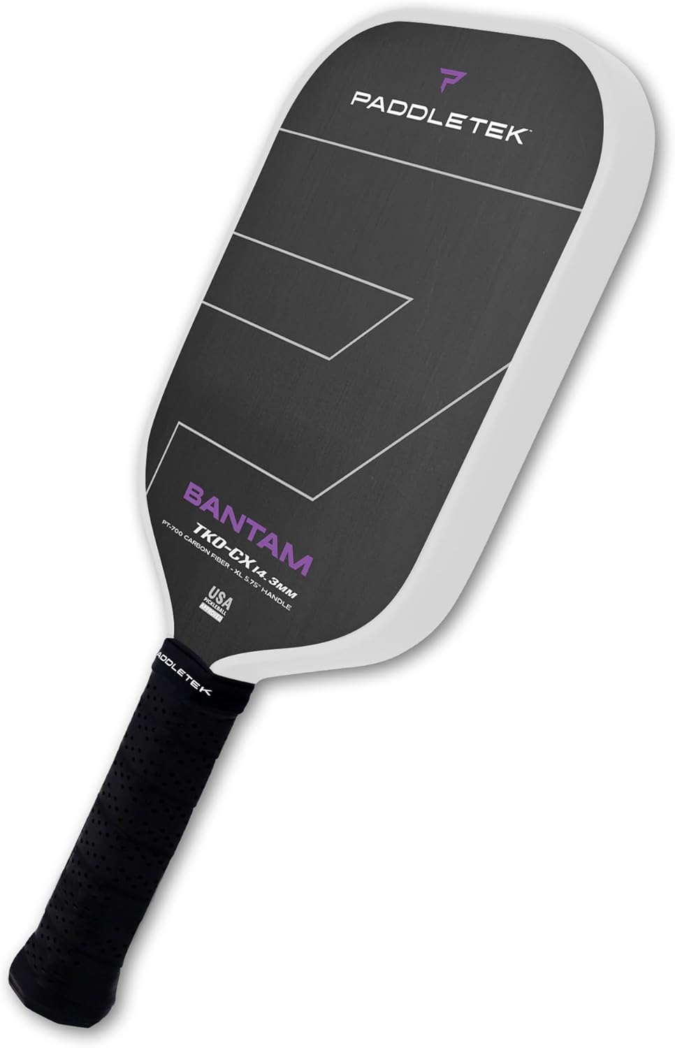 Paddletek Bantam TKO-CX 14.3mm Pickleball Paddles with Polymer Honeycomb Core - Unidirectional Carbon Fiber – Torsional Weighting & High Tack Performance Grip - USAPA Approved - 5.75 Inch Handle