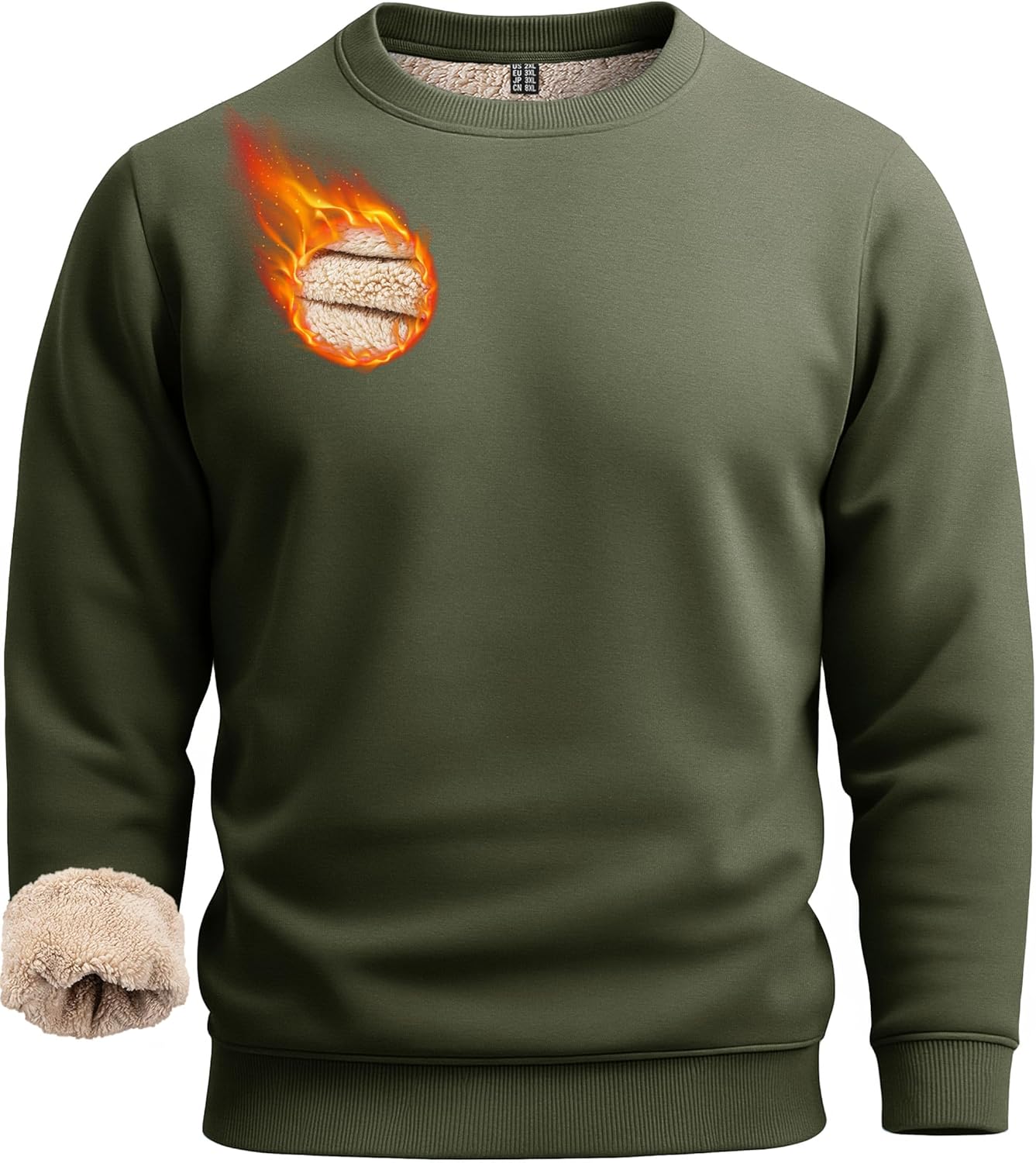 Boladeci Men's Full Sherpa Lined Crewneck Sweatshirts Heavy-weight Fleece Pullover Thick Thermal Long Sleeve Cotton