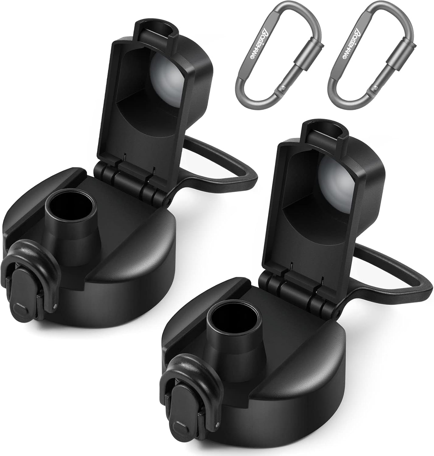 - Enhanced Convenience & Durability: Equipped with a locking catch to prevent dust and leaks. The clamshell lid flips open automatically with the press of a button, and its wide spout allows for fast rehydration. Made from BPA-free plastic, this lid is dishwasher safe and designed to withstand unexpected drops. Includes a free D-ring shape locking carabiner, making carrying your water bottle more convenient.