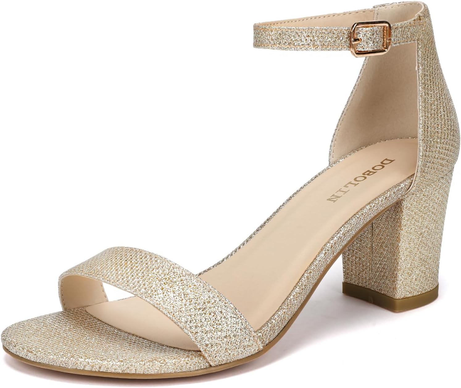 Women's Heeled Sandals Open Toe Ankle Strap 2.5-Inch Chunky Heels Dress Shoes Wide Feet Friendly