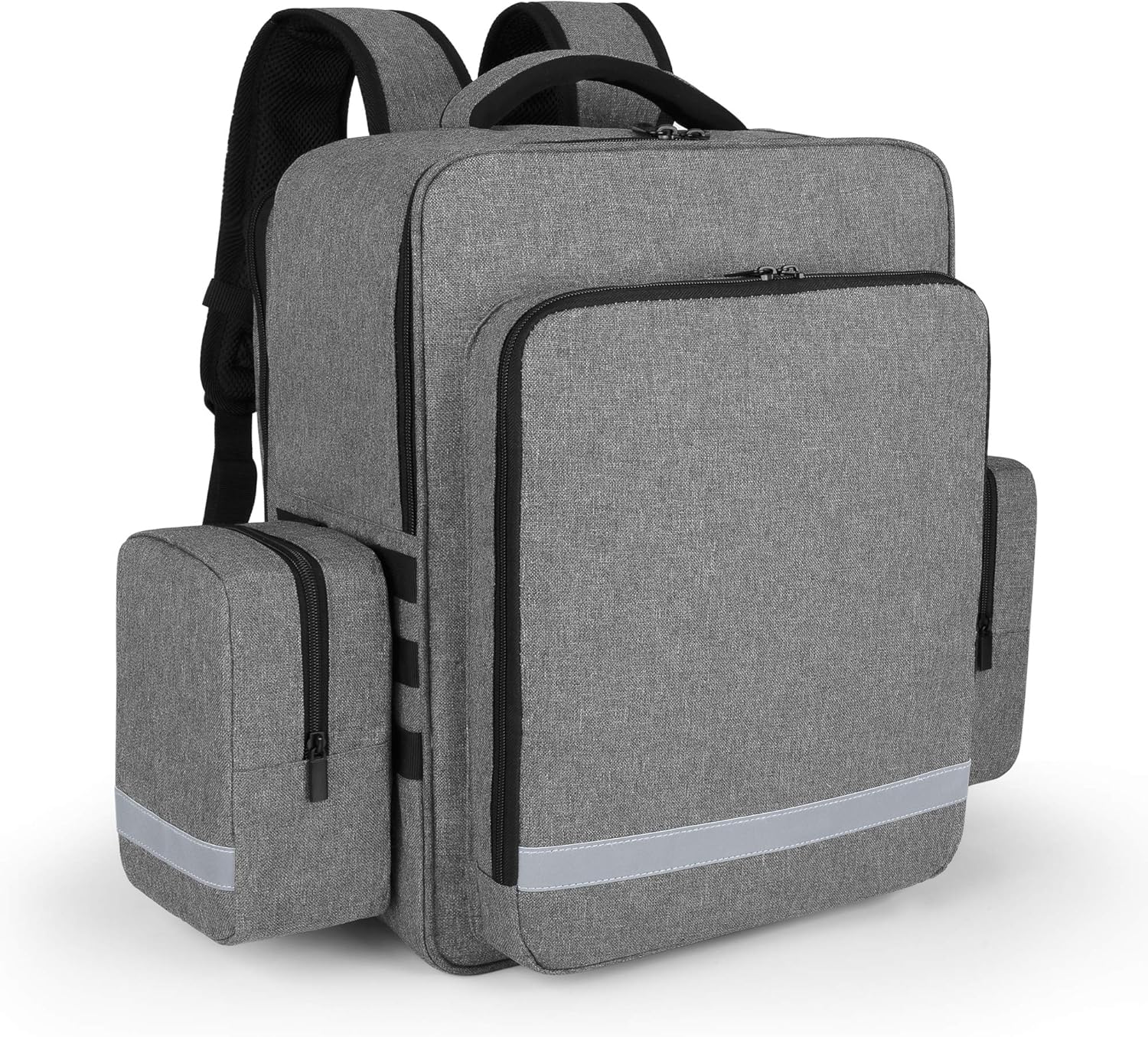 - ORGANIZING NEATLY: Four grid compartments and a transparent zipper pocket inside the main compartment for better organization. Two detachable side pockets for necessary first aid supplies. Front compartment with elastic slots and mesh pockets secure your med gear.