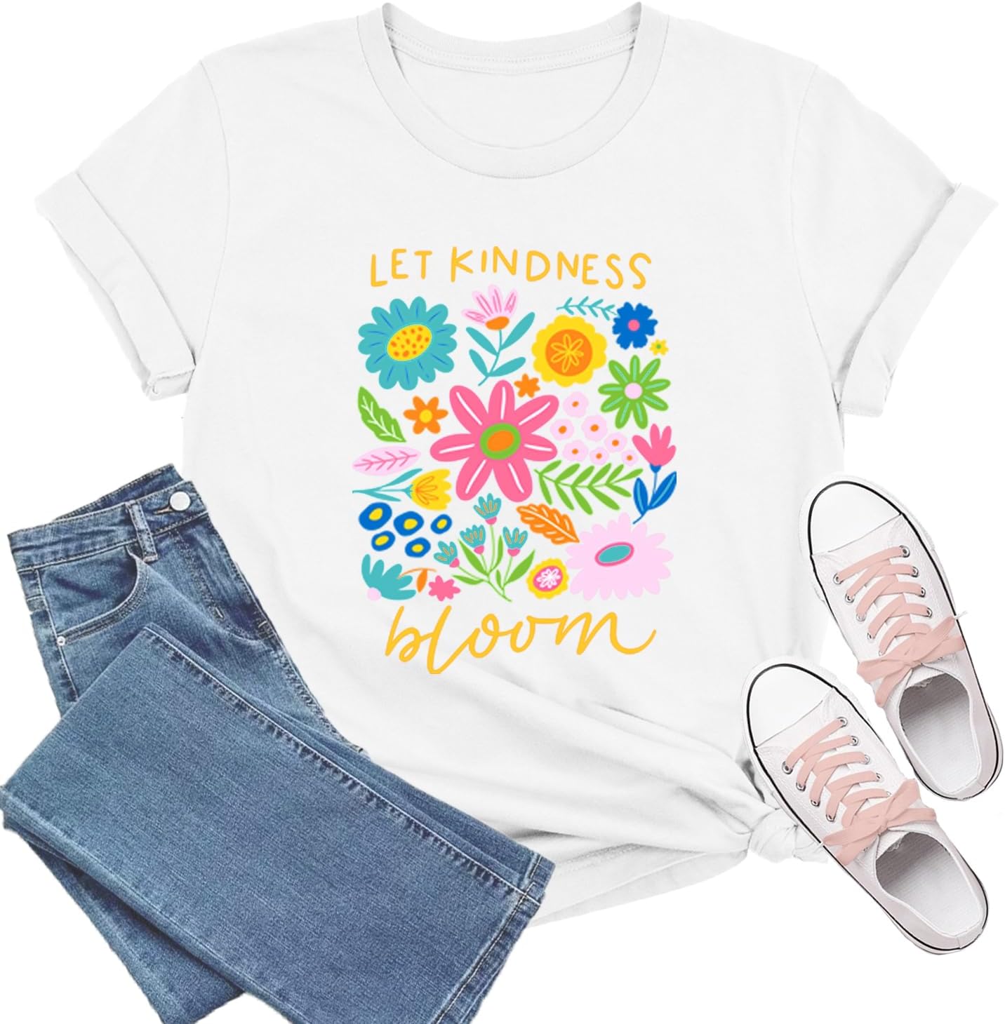 Be Kind Shirt Women Let Kindness Bloom T-Shirts Cute Floral Tee Tops