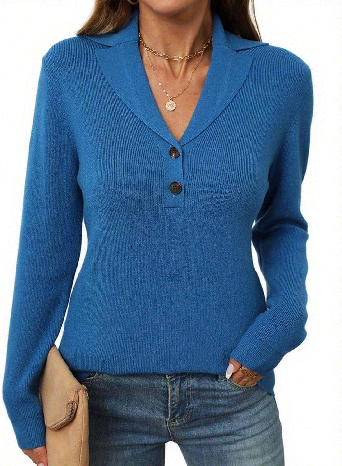 LOMON Sweaters for Women 2025 Fall Knitted V-Neck Collared Button Pullover Dressy Casual Long Sleeve Polo Shirts Business