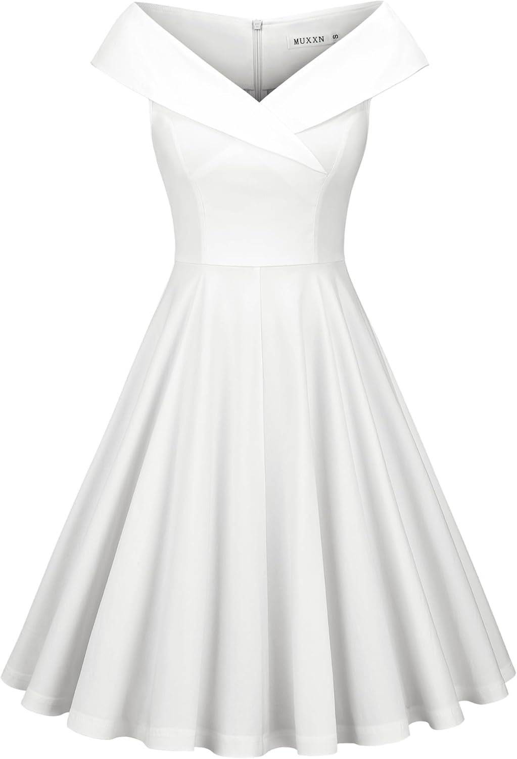 MUXXN Women's 1950s Retro Vintage Sleeveless V Neck Midi Cocktail Swing Dress