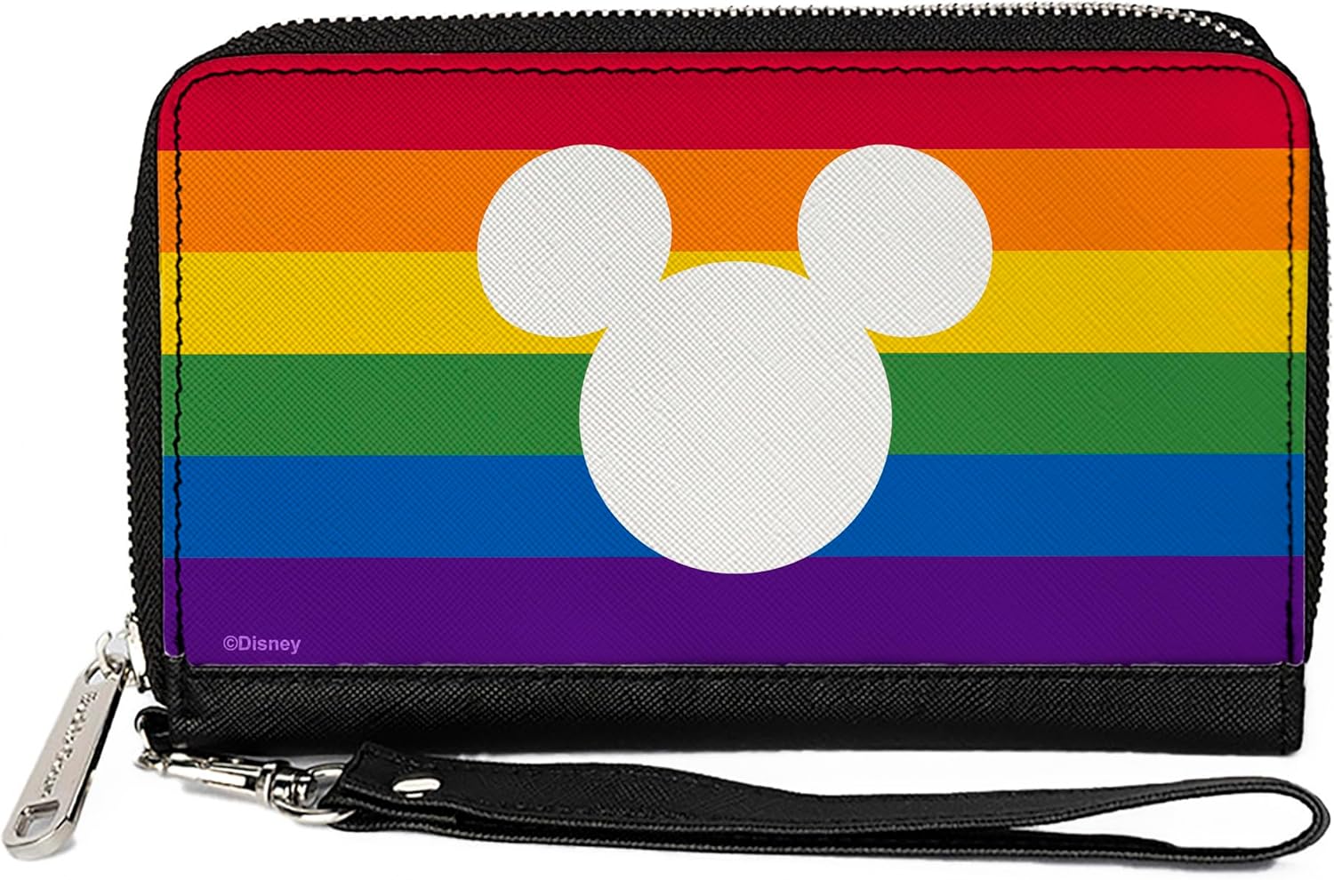 Buckle-Down Disney Wallet, Zip Around, Mickey Mouse Pride Ears Icon Rainbow Stripe Multi Color, Vegan Leather