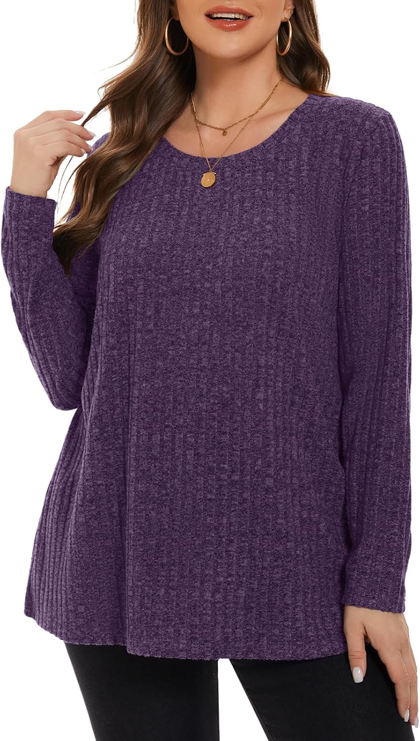 BELAROI Plus Size Tops for Women Tunic Shirts Long Sleeve Scoop Neck Casual Lightweight Sweaters Pullover Loose Fit