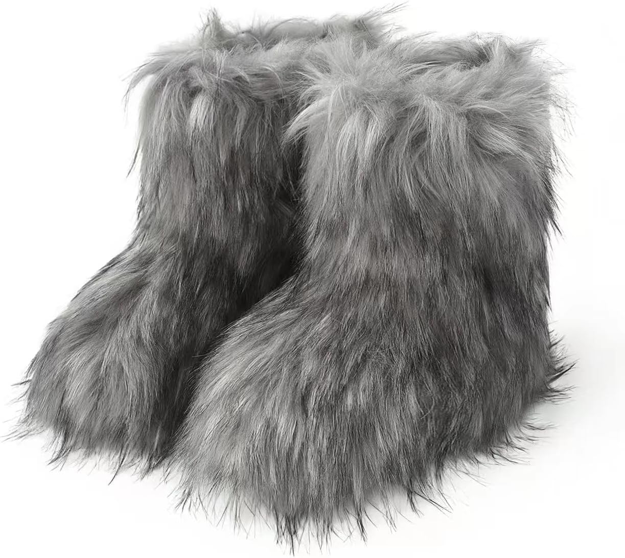 Fur Boots for Women Snow Furry Fluffy Platform Flat Ankle Mini Boot Winter Round Toe Y2k Comfortable Mid-Calf Short Outdoor 2025