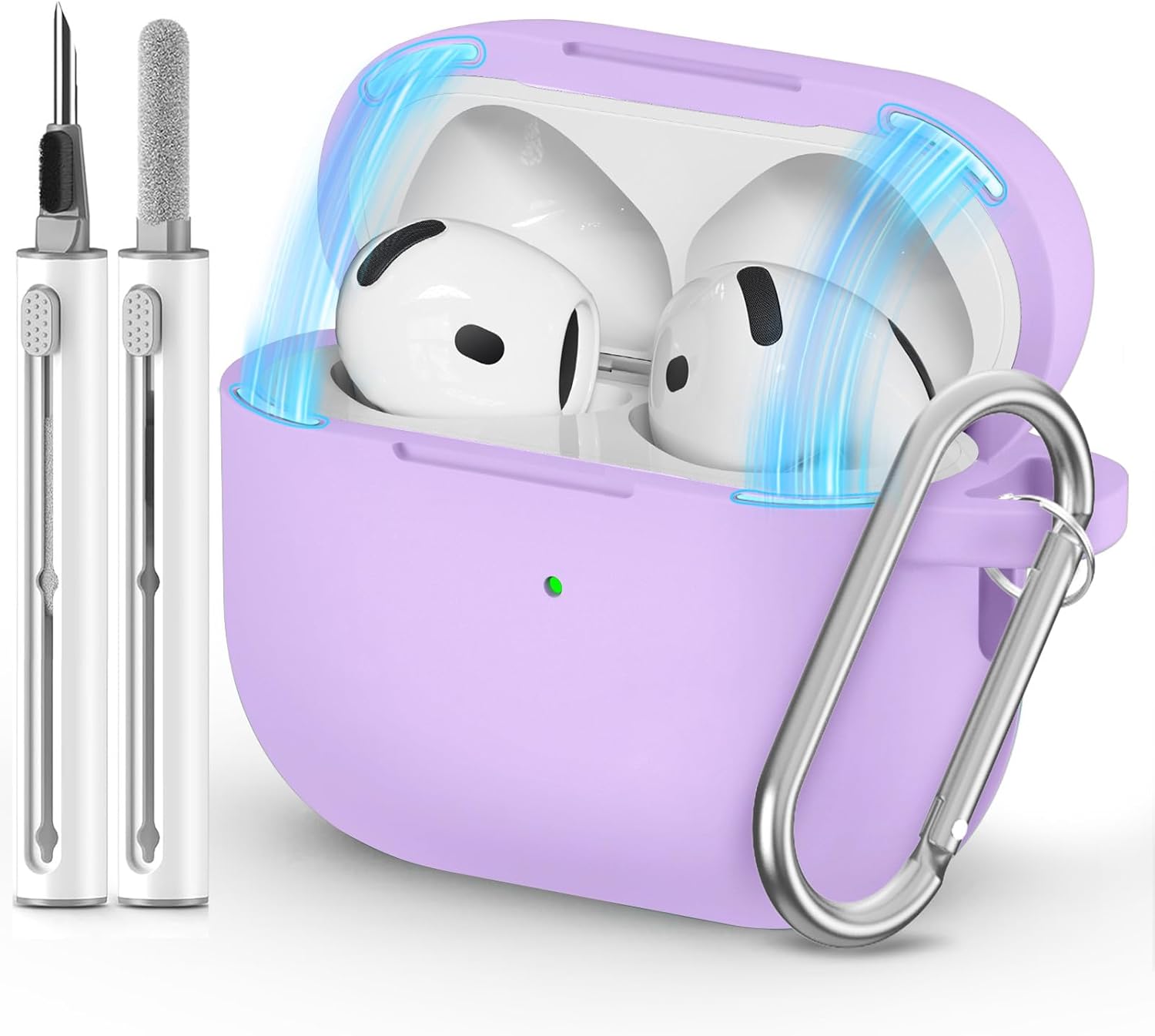 Ljusmicker for AirPods 4 Case 2024 with Cleaner Kit,Soft Silicone Protective Cover for Apple AirPods 4th Generation Cases for Women Men,AirPod 4 Case Accessories with Keychain-Magnetic Purple