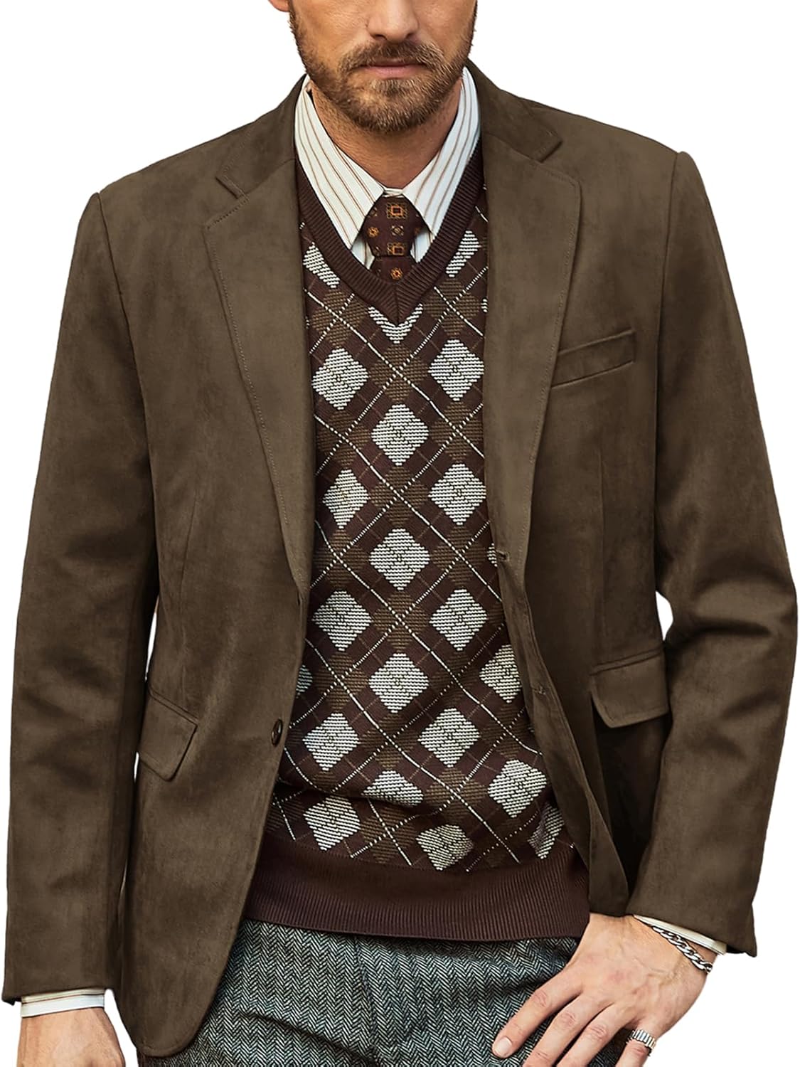 PJ PAUL JONES Mens Blazer Jacket Faux Leather Suit Jacket Casual 2 Buttons Suede Sport Blazer Coat with Pockets
