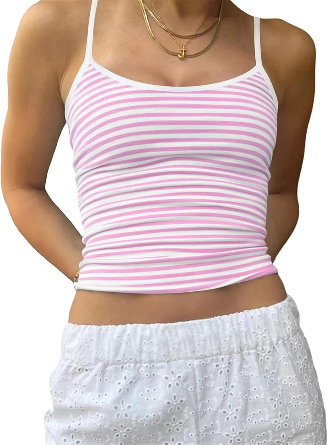 Women Striped Tank Top Y2k Summer Cropped Cami Slim Fit Aesthetic Going Out Tops Vest for Teens