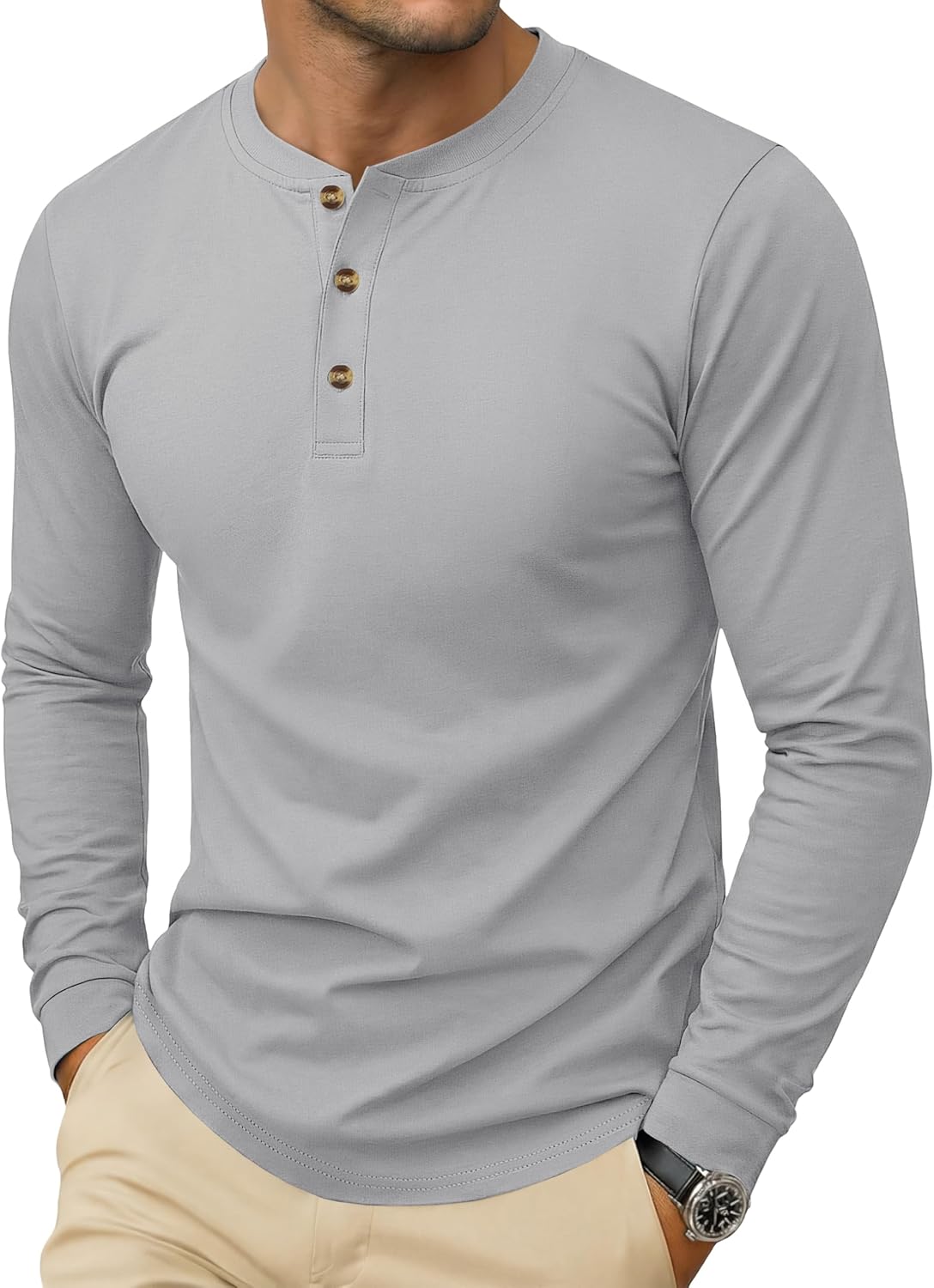 MAGNIVIT Men's Long Sleeve Henley Shirts Cotton 3-Button Spring Casual T-Shirts Solid Color Soft Basic Tops 2026