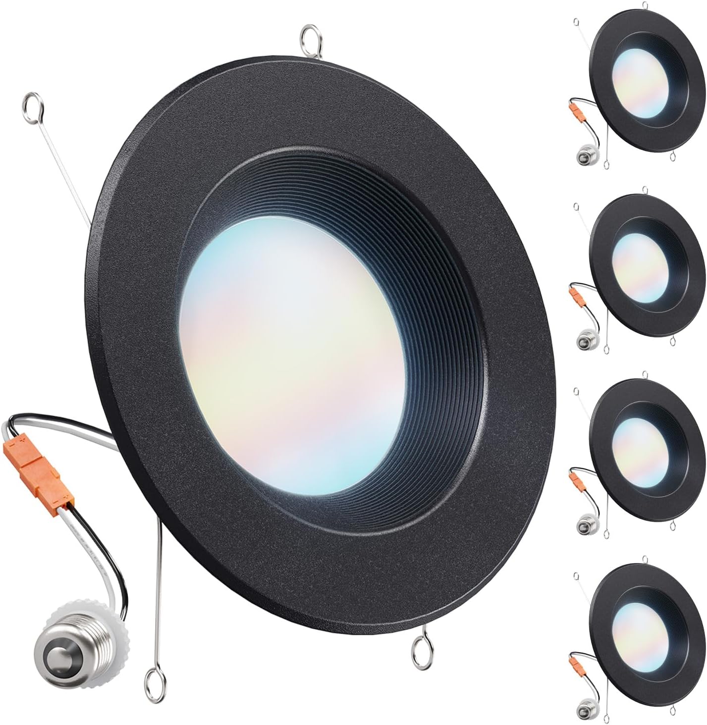 Sunco 4 Pack LED Black Recessed Light 6 Inch, 5CCT 2700K/3000K/3500K/4000K/5000K Selectable, Dimmable Can Lights, Baffle Trim, 13W=120W, 965 LM, Damp Rated, Retrofit Installation, UL Listed