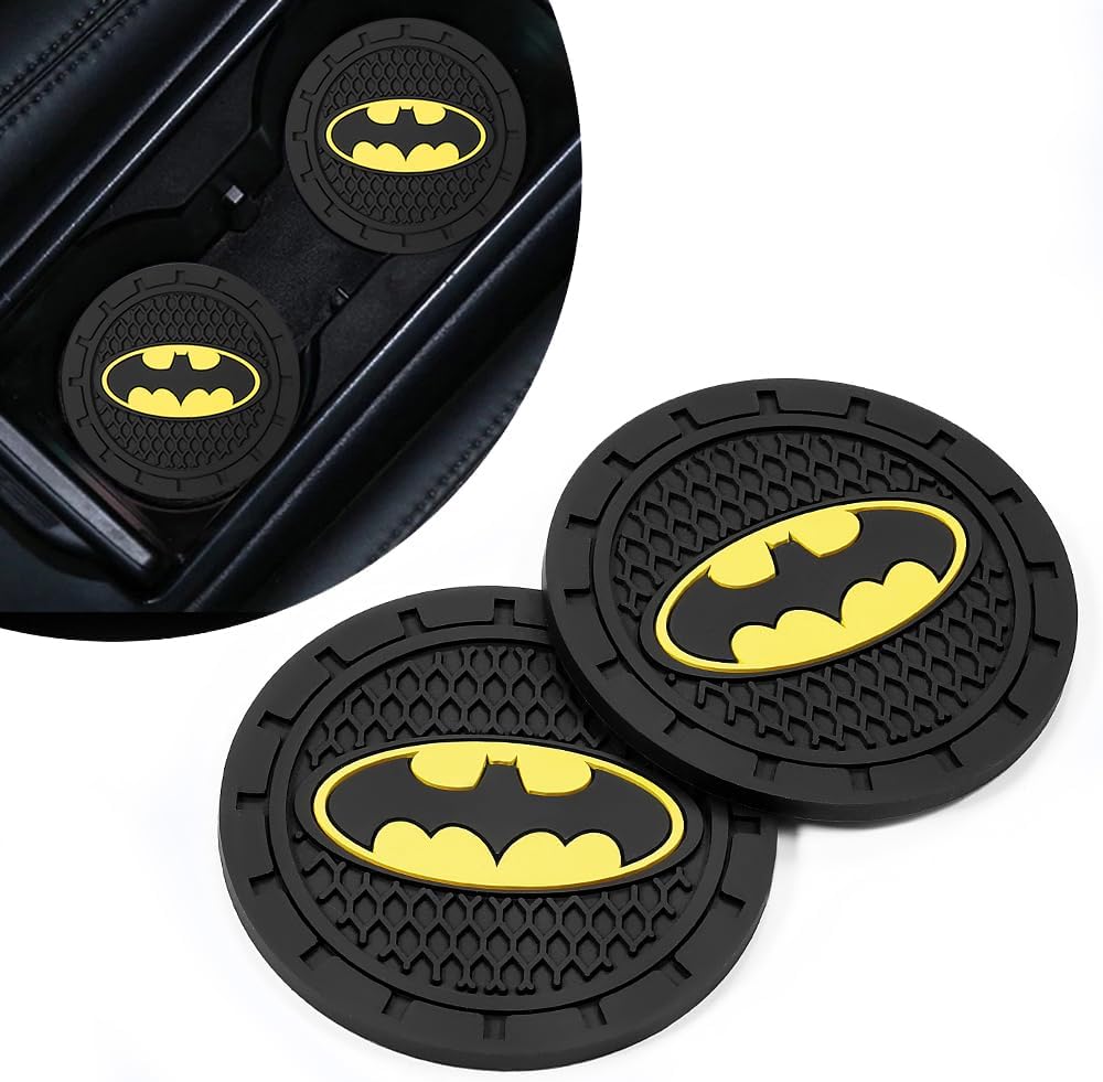 Bat Man 2Pcs Car Cup Holder Coasters for Marvel Fans, The Bat Man Car Coasters for Car Cup Holder Insert,Silicone Non-Slip Car Cup Mat, 2.75 Inch