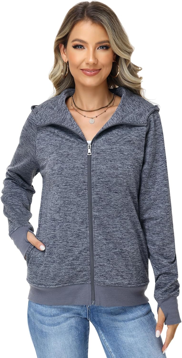 ANOTHER CHOICE Women Zip Up Sweater Speckled Jacket with Thumb Hole