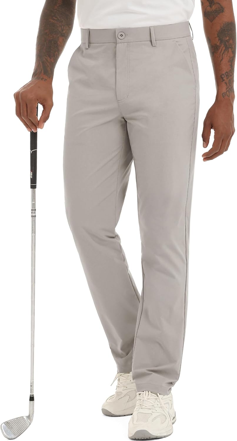 Lzzidou Men's Golf Pants Classic Fit - Quick Dry Performance Trousers Water Resistant Lightweight Work & Travel Slacks