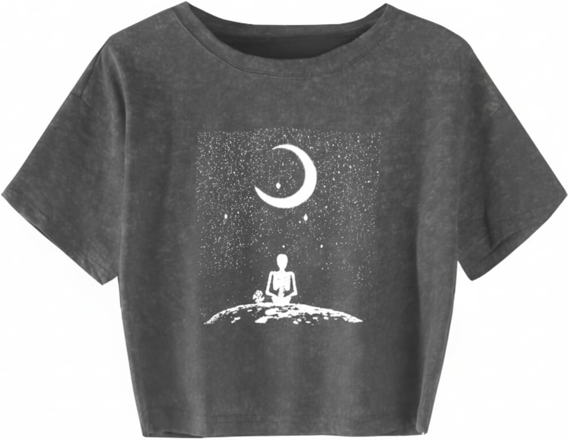 SOFIA'S Choice Women Washed Short Sleeve Graphic Tees Crop Tops Summer Casual Loose Basic Cotton T Shirts