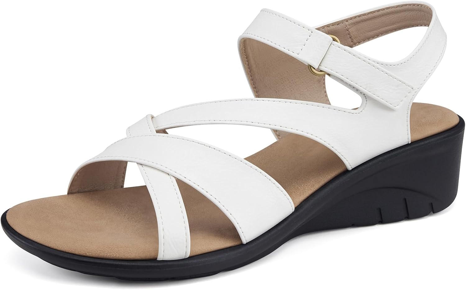 SHIBEVER Wedge Sandals for Women Dressy: White Sandals Woman Size 7 - Comfortable Summer Open Toe Casual Walking Low Wedges