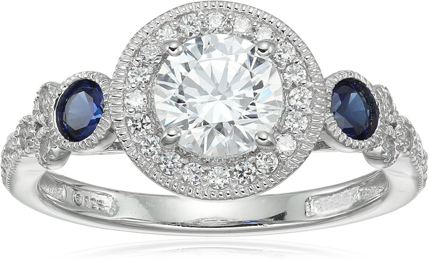 Amazon Essentials Platinum-Plated Sterling Silver Infinite Elements Cubic Zirconia Antique Round-Cut and Created Sapphire Ring, (previously Amazon Collection)