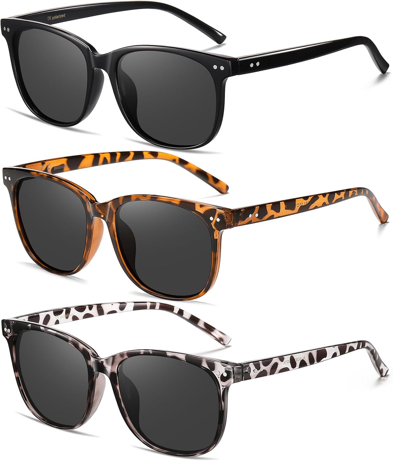 Wzerry 3 Pack Polarized Sunglasses for Women - Trendy Glasses Big Frame Style Lightweight with UV400 Protection Lens