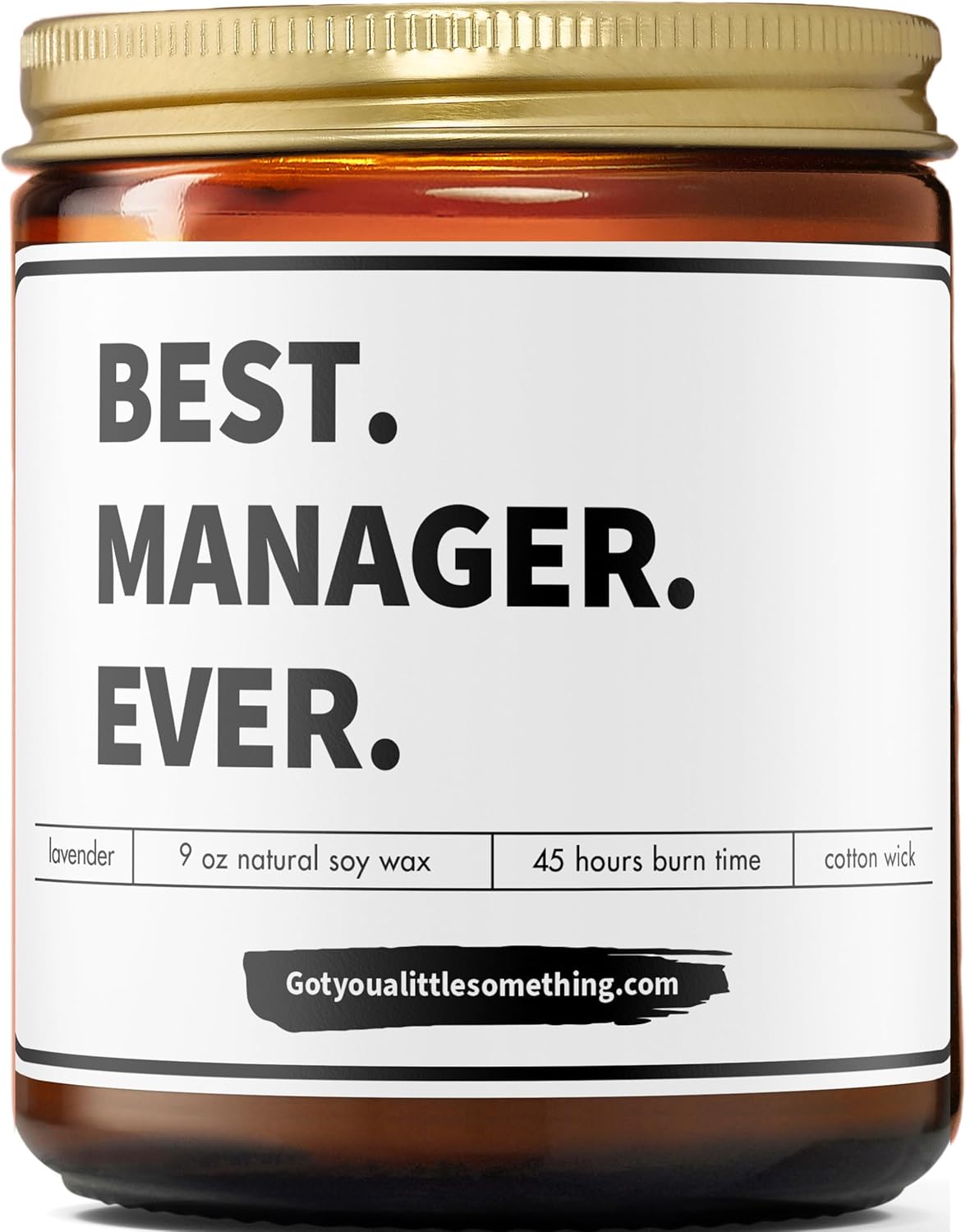 - Best Manager Ever Soy Candle - Got You a Little Something candle is for the best manager in your life who deserves a wonderful treat! Our 9-oz hand-poured soy candles infused with premium lavender essential oils are famous for their long-lasting fragrance that's safe, addictingly fragrant, and very relaxing.