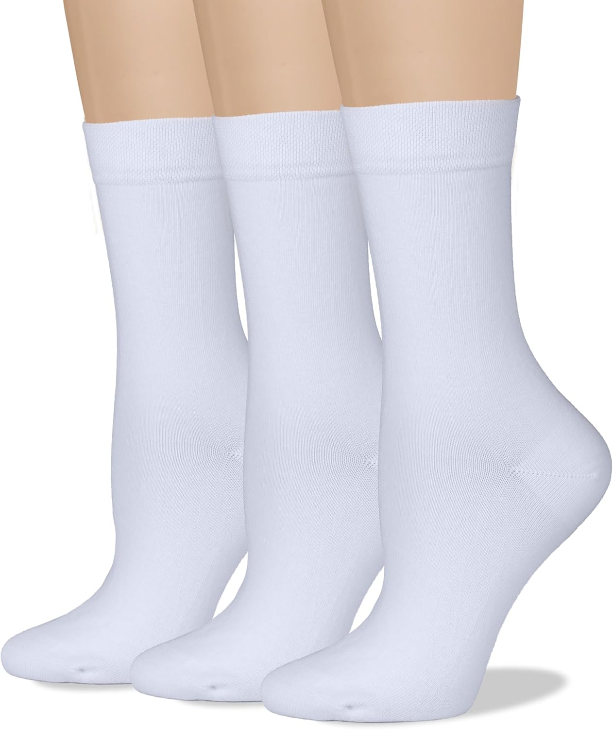 COTTON DAY Women's Soft Combed Cotton Dress Socks Seamless Toe Black White Gray Navy Blue Brown Beige
