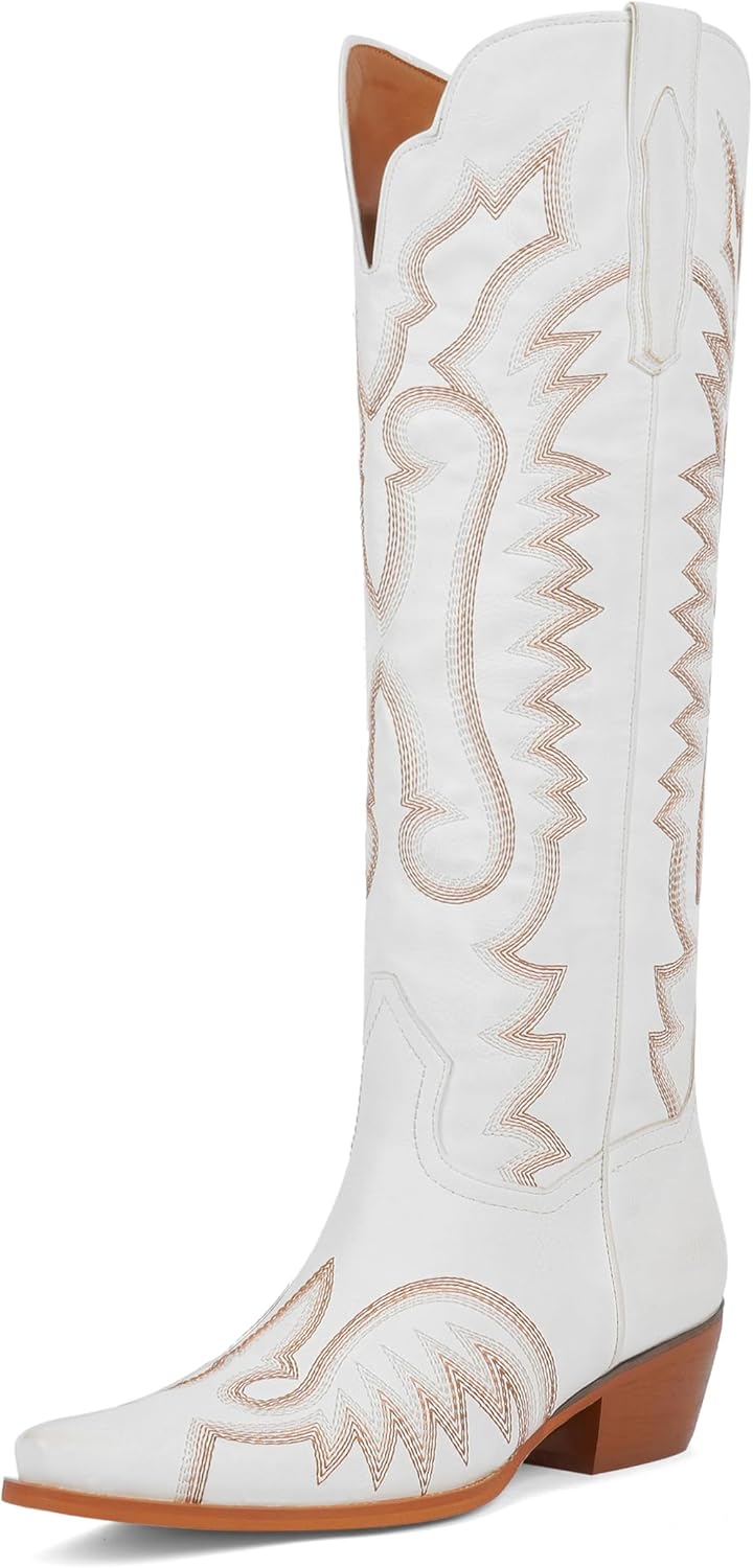 Womens Cowboy Boots Knee High Cowgirl Boots Chunky Heel Embroidery Western Boots for Women