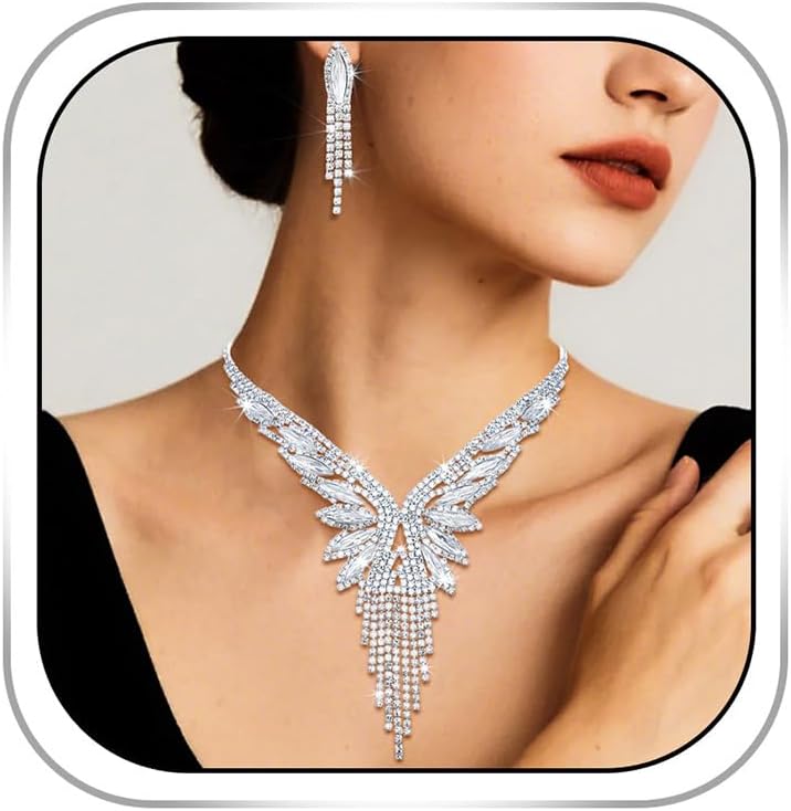 Gangel Silver Wedding Jewelry Sets Rhinestone Earring Necklace Set Crystal Necklaces Earrings Formal Prom Accessories for Women