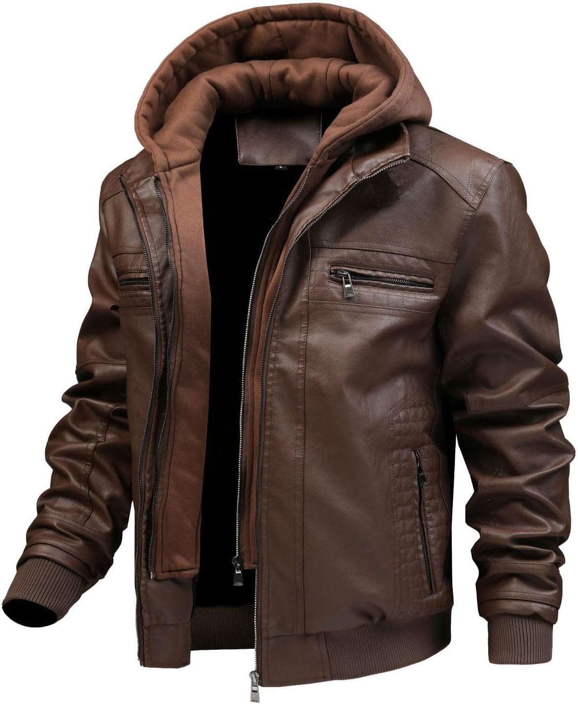 FTIMILD Men's Leather Jacket Motorcycle Jacket Windproof PU Vintage Bomber Jacket with Removable Hood