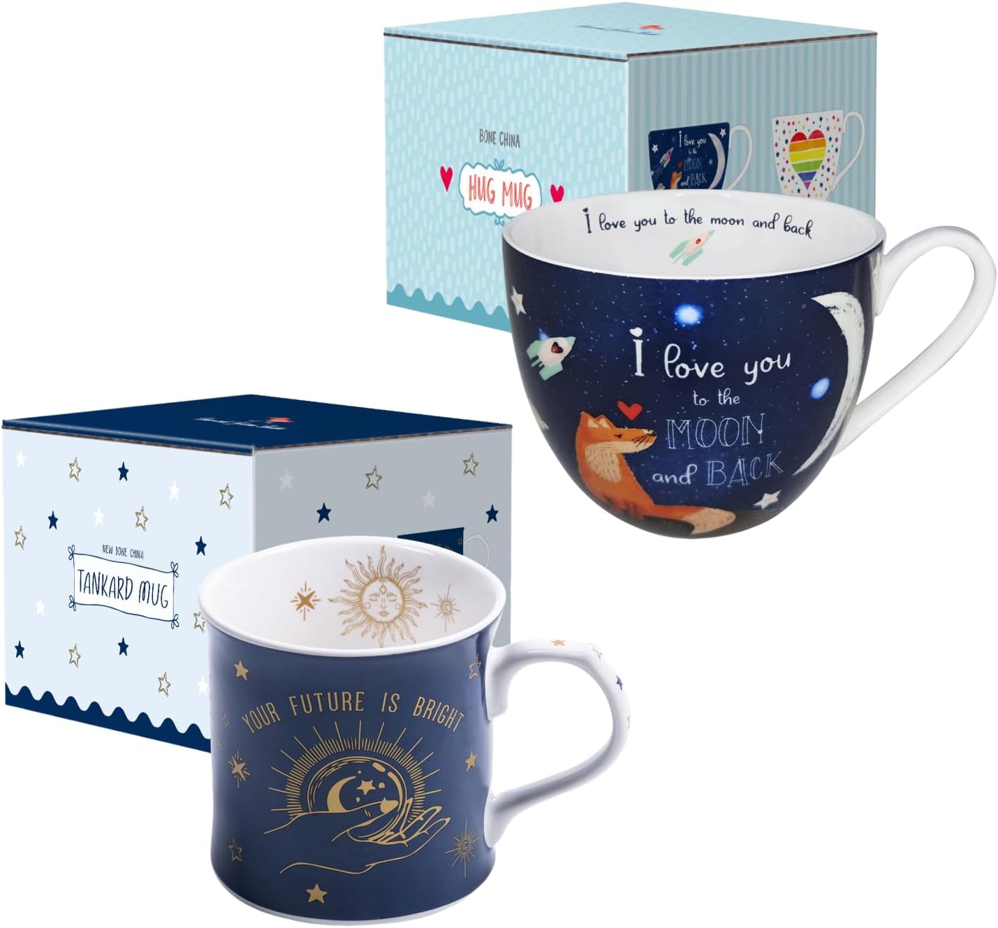 - "I love you to the MOON and BACK" & "Your Future is Bright" Coffee Mug Gift Set: This enchanting mug duo brings together the deepest sentiments of love and optimism. Where cosmic wonder meets heartfelt artistry, each sip becomes a moment of connection and boundless possibility. Perfect for lovers, tarot enthusiasts, and stargazers alike, this set is officially licensed and designed in England by Harvest Green Studio.
