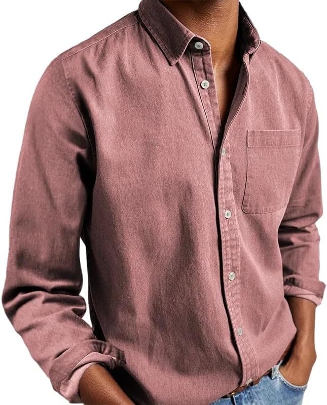 Mens Denim Shirt Long Sleeve Button Down Shacket Work Western Shirts Regular Fit Cowboy Casual Blouse