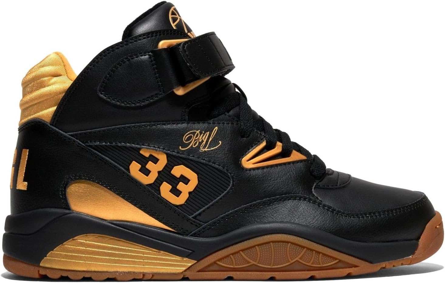 Ewing Patrick Athletics Kross x Big L Black/Gold/Gum – Limited Edition Tribute Sneaker, All-Leather Upper, Gold Accents, TPU Midfoot Insert, Lightweight EVA Midsole