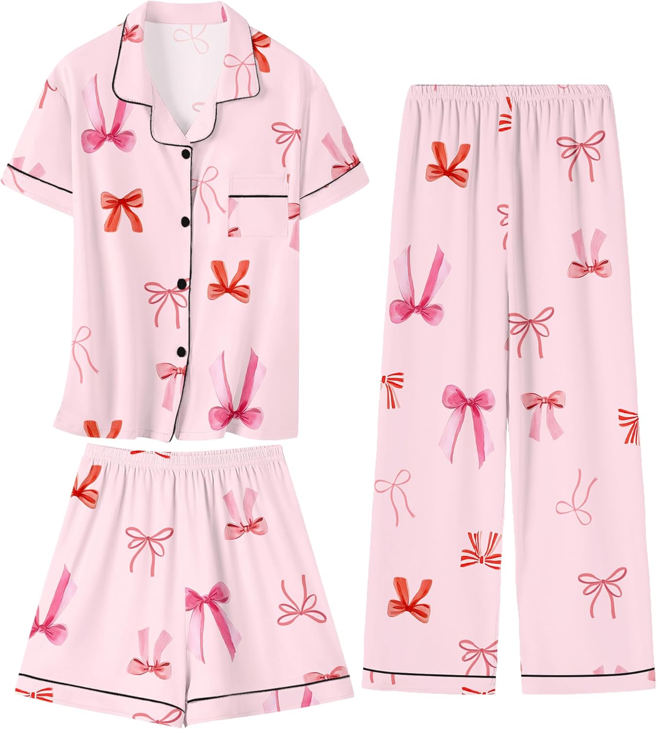 Umeyda Girls Pajamas Set Soft Short Sleeve Button-Down Sleepwea Nightwear 3Pjs Set Loungewear, 5-14 Years