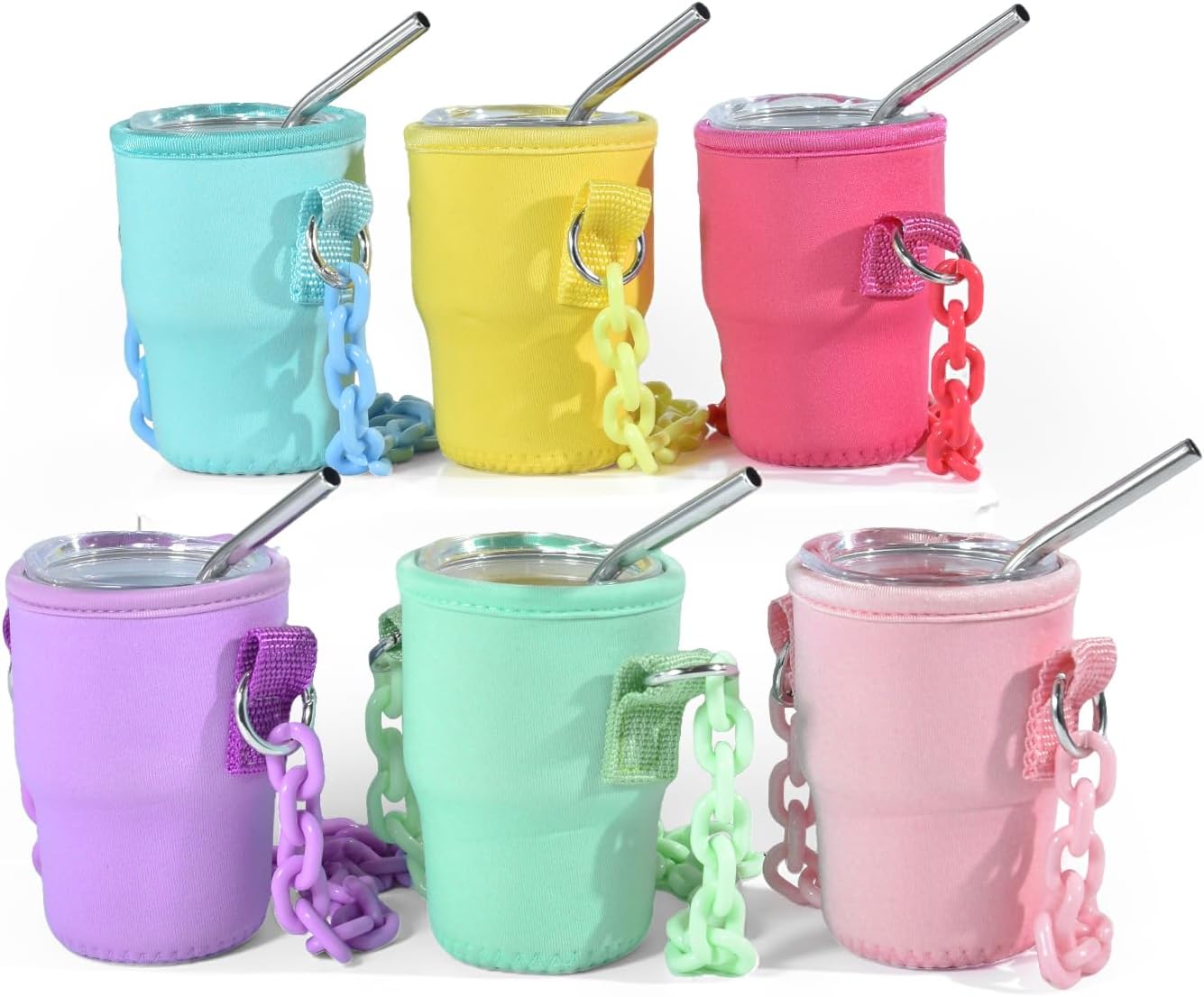 AGH 5 oz Mini Tumbler Shot Glass with Colored Sleeves Stainless Steel Sublimation Tumblers Cute Double Wall Vacuum Insulated Cups, 6 Pack
