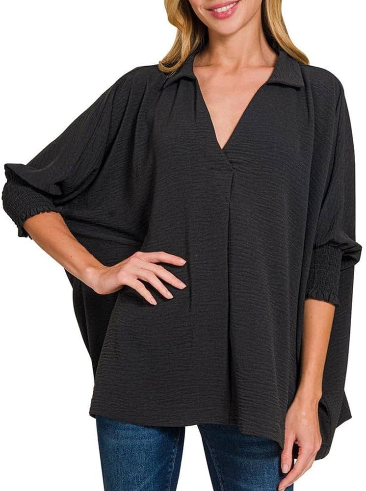 Zenana Airlow Collar T-Shirt Black/M