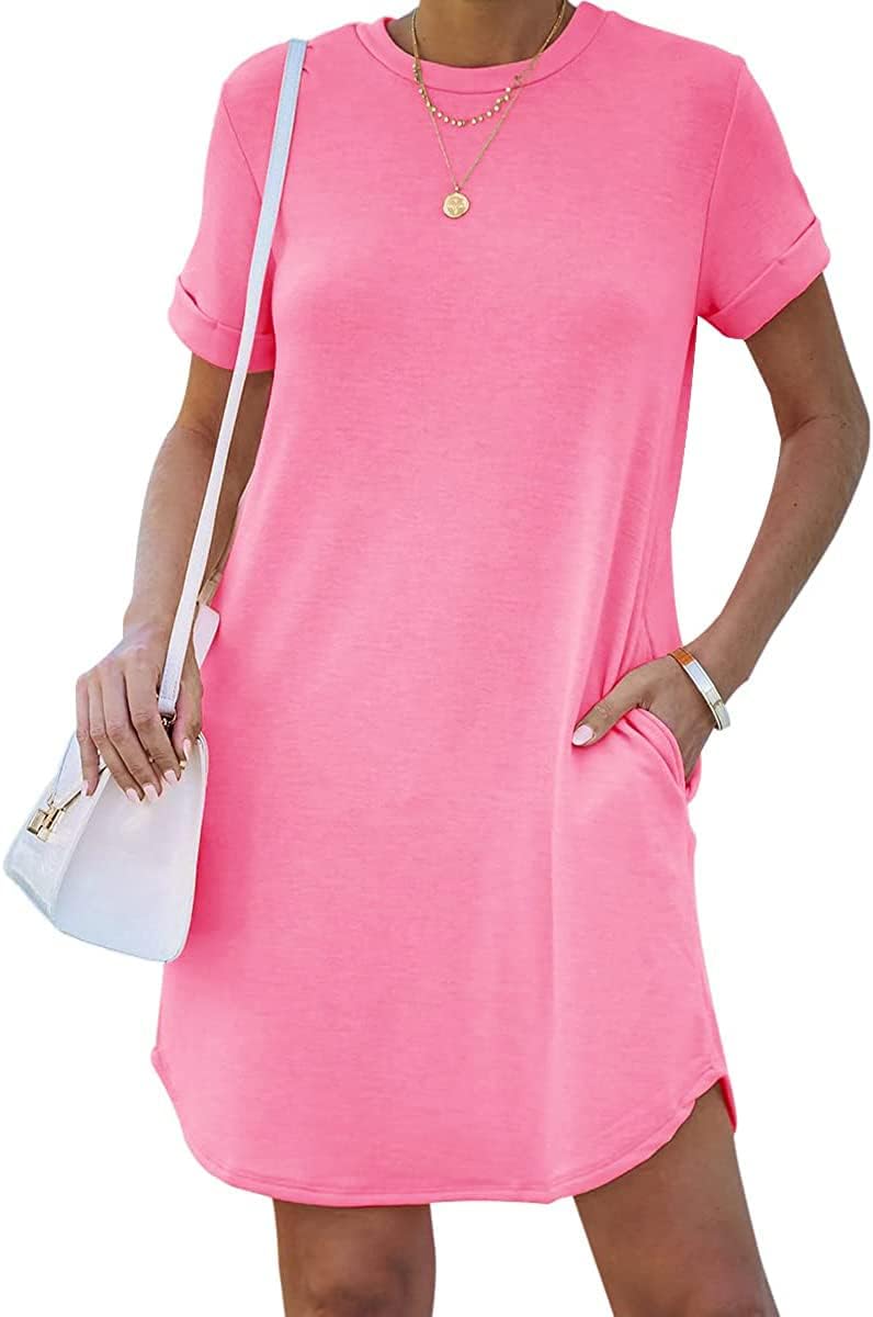 YEXIPO Women's Casual Summer Short Sleeve T Shirt Dress Nightgown Crew Neck Loose Solid Color Basic Dresses with Pockets
