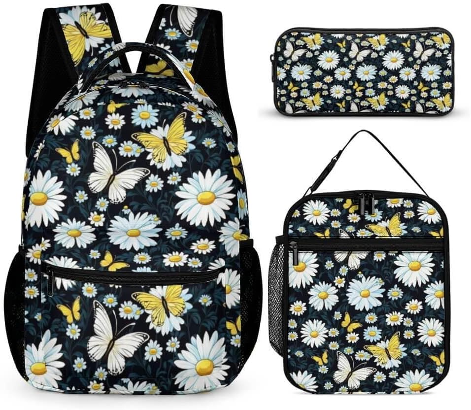 Daisy Backpack with Lunch Box & Pencil Case for Kids Girls Boys School, 16 Inch Cute daisies Bookbag, School Backpack for Students Children, Lightweight, Large Capacity