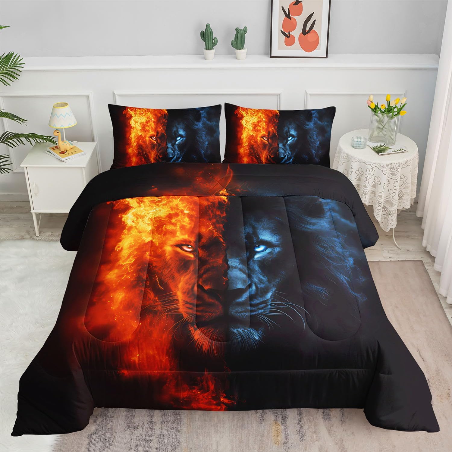 Lion Comforter Set Wild Animals Printed Bedding Set with 1 Comforter and 2 Pillowcases for Boys and Girls Bedroom All Season(Lion Twin)