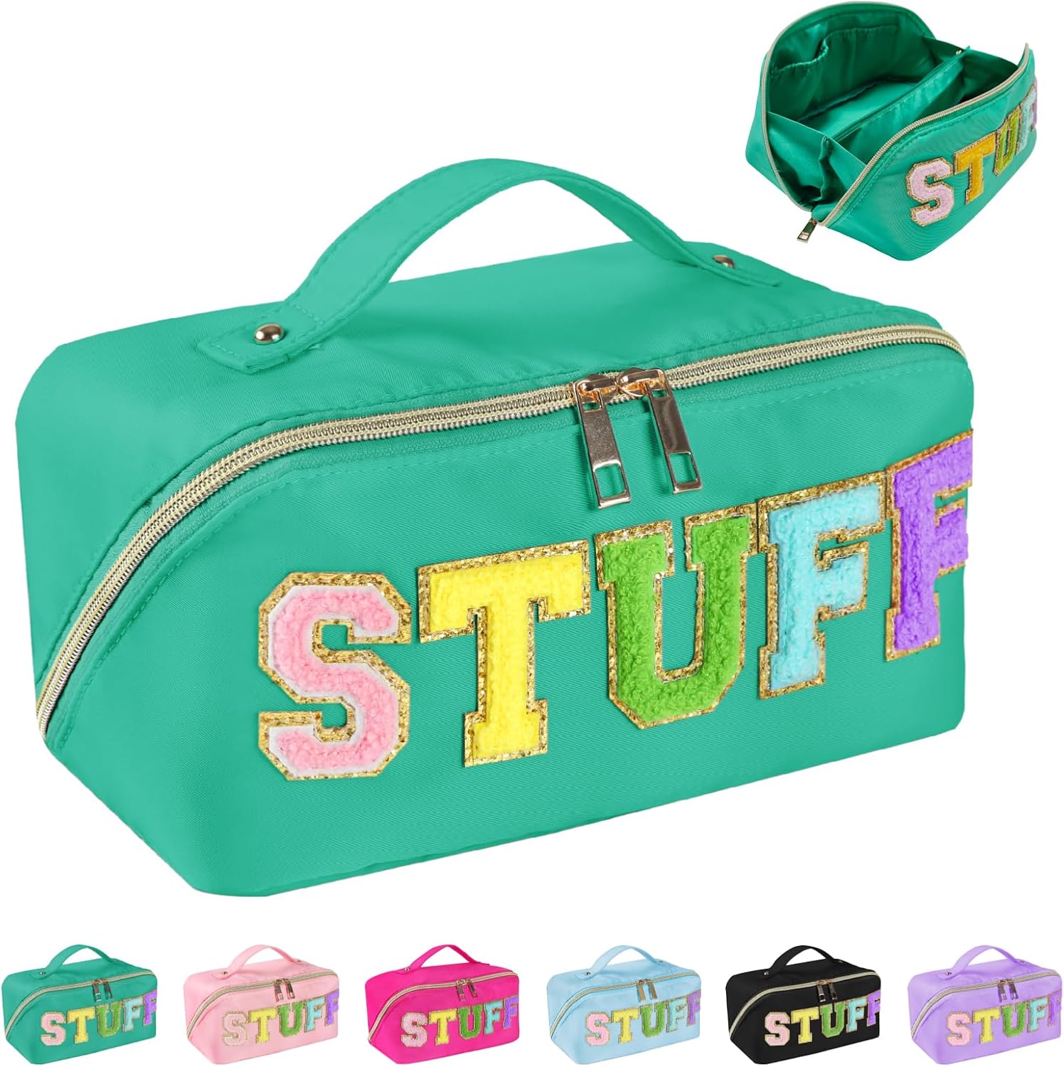 Preppy Stuff Makeup Bag, Stoney Clover Travel Toiletry Bag Chenille Letter Make Up Bags Girls Cute Cosmetic Bag Stuff Pouch Wedding Birthday Stocking Stuffers for Gifts (Green)