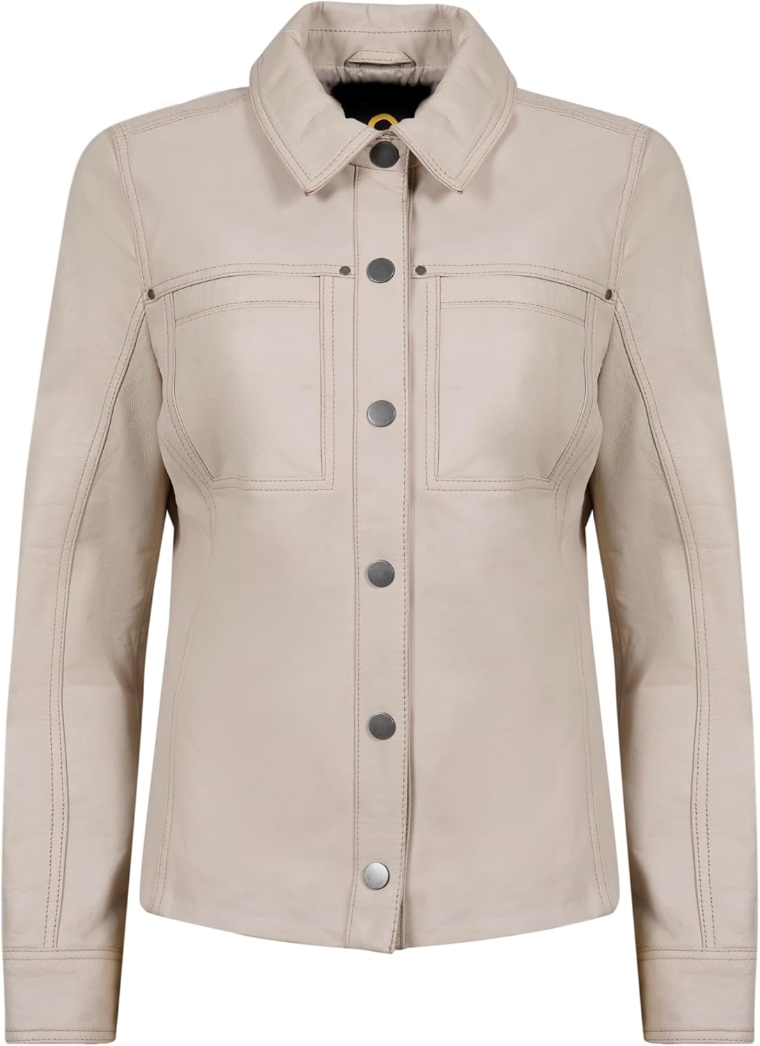 Rauly Women’s Leather Trucker Jacket – Stylish Button-up Style, Lightweight Design Womens Leather Jacket