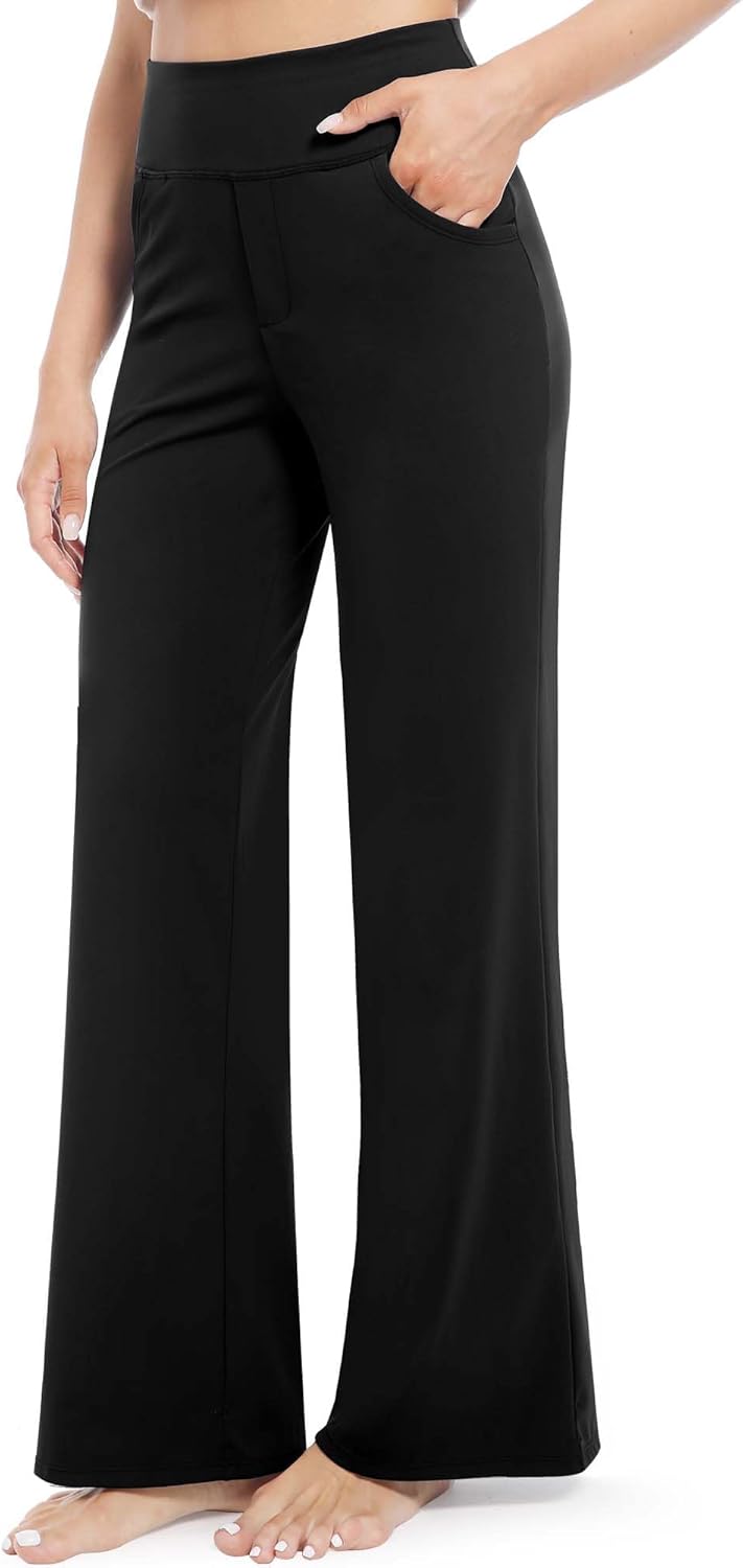 CL convallaria Womens Wide Leg Yoga Pants with Pockets Stretch Trousers Business Casual Dress Pant Petite Regular